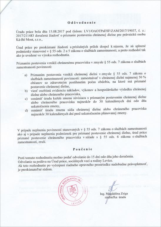 V prípade, že sa rozhodnete pre druhú výhodnejšiu možnosť, nielenže ušetríte 120 € za každého zdravotne postihnutého občana, ktorý Vám chýba do povinného odvodu, ale zároveň získate aj tovar, ktorý využijete. Potvrdenie (link) o zrealizovanej objednávke, ktoré vám vystavíme po úhrade faktúry, spolu s fotokópiou faktúry a dokladu o jej úhrade priložíte k výkazu za rok 2017. Na základe toho máte nárok na odpočítanie si sumy zrealizovanej objednávky od vykázaného odvodu za nesplnenie povinného podielu zamestnancov so zdravotným postihnutím.