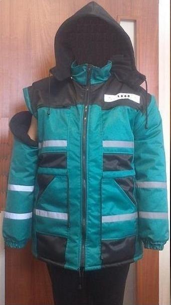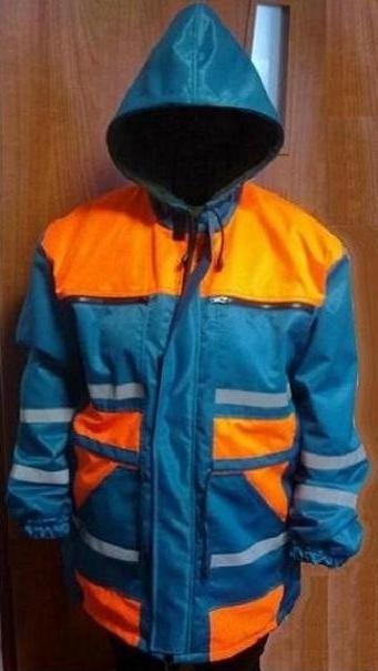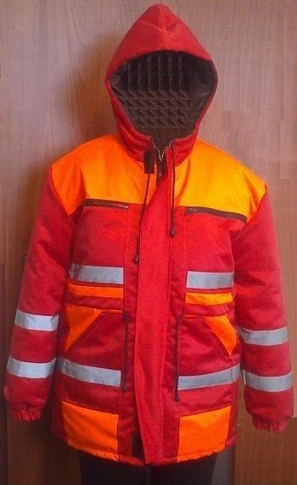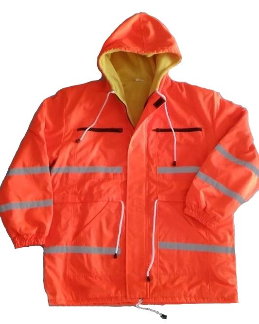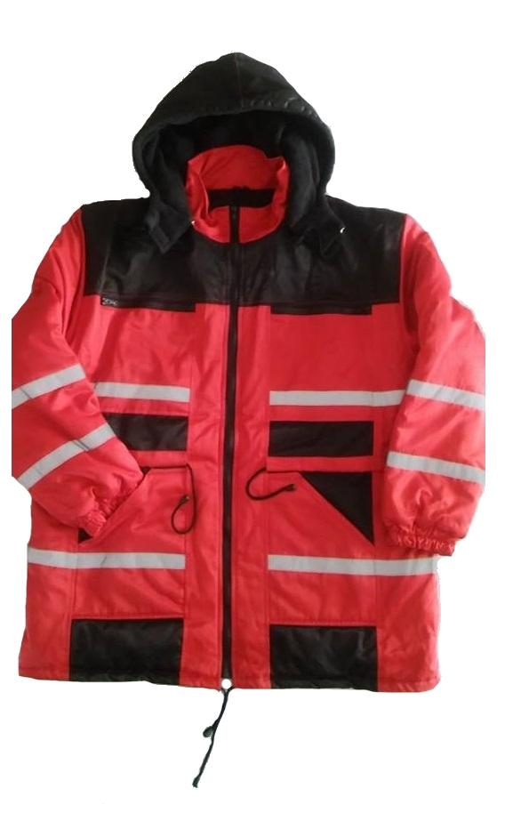 Bunda nepr. olejoodolný materiál, 5 cm reflexné pása, podšívka PES, všitý vatelín